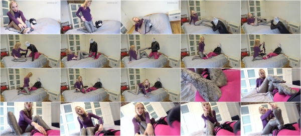 Today on I wanna try something new. We're gonna be trying out pantyhose footjobs. Are you a footjob virgin? Well this is going to be easy. Down on your knees. And for starters, worship my pantyhosed feet for a while. Then off to bed so I can tie up your legs and finally let me see your pantyhosed little friend growing...