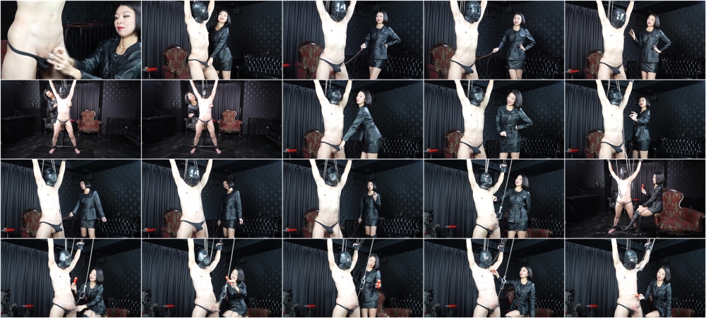 The session begins with Mistress Ruiko fitting a spiked cock ring on her sub.This sub has a unique reaction — fear arouses him, and with every erection, the spikes dig deeper into his flesh.Blindfolded and vulnerable, he first endures heat of smoldering incense teasing his nipples. Then comes the cane — sharp, deliberate strokes that heighten his tension.When Mistress Ruiko grips his cock, the spikes press in further, and his body writhes in agony.She strips off his underwear, binds his cock with rope, and proceeds to torment it with hot wax.A cruel spiral of fear, arousal, and pain — all perfectly orchestrated by Mistress Ruiko.