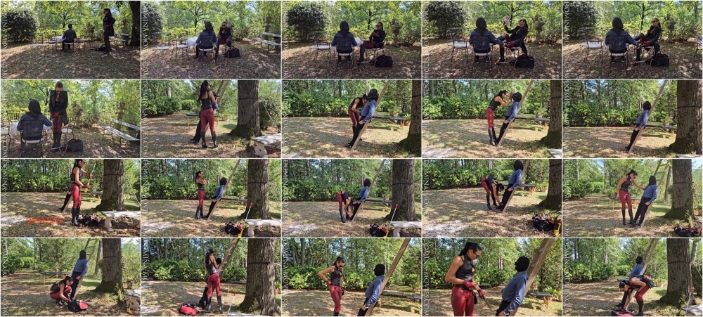 Madame Catarina as a burglar has read in the newspaper about a very rich guy who lives remotely in a villa. He should also own very famous diamond jewelry. So she pays him a visit. While he is sitting in his beautiful garden the handcuffs click… his clothes are to be cut off his body so that he reveals where he has hidden his money and especially the family jewelry.