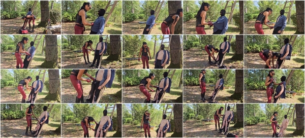 Madame Catarina as a burglar has read in the newspaper about a very rich guy who lives remotely in a villa. He should also own very famous diamond jewelry. So she pays him a visit. While he is sitting in his beautiful garden the handcuffs click, his clothes are to be cut off his body so that he reveals where he has hidden his money and especially the family jewelry.