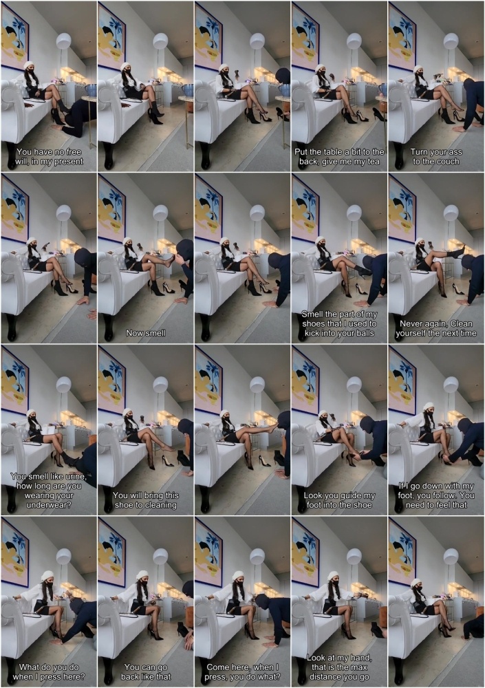 In this video, Sultana Aisha provides step-by-step instructions on how to properly put on her Louboutins, guiding you through the process with precision. Dressed in black nylons, a sleek black skirt, and matching high heels, she exudes authority and style.As she teaches you to become her proper shoe minion, Sultana Aisha ensures you understand the importance of each detail, from handling the shoes to ensuring they are worn perfectly. The video emphasizes her dominance and expertise, leaving no room for error as you learn to serve her exactly as she desires.