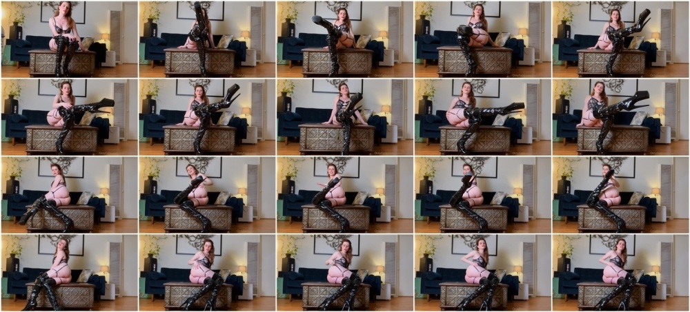 Mistress exquisitely taunts you with your two favorite things, sexy shiny boots and fat ass cheeks. She mind fucks you by teasing you with her plump supple ass while making worship her boots instead... did you ever think you'd beg to stop kissing boots you little foot slut?