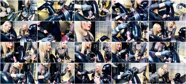 The two cruel Mistresses, intent on taking this latex gimp to his limits, find a new hole to use: his pee-hole. Lady Phoenix and Miss Anna Elite take turns to use sounding rods to stretch the gimp’s urethra wide. Can he take two thick sounding rods at the same time? The two sadistic blondes will experiment on him and amuse themselves with the results!