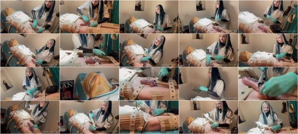 Nurse Oyuki shows no mercy as she proceeds with the ultimate procedure—castrating her patient. Restrained, he endures every step of her sadistic process. She staples him with precision, subjects him to electrics, and finally seals his fate with an elastrator, ensuring there’s no turning back. Cold, clinical, and completely in control, Nurse Oyuki takes everything from him, leaving him forever changed under her dominant care.
