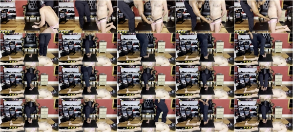 It's time for some light stress relief! My caged sissy is on his knees and ready to feel the wrath of my unrelenting ebony soles. My trample platform is nicely in position beneath my throne, and I have the key to free his cock and balls! Hard in his cage, this sissy's cock was desperate to escape, and precum slowly dribbles from the tip in anticipation for what may come. A hole in the platform makes for perfect access to those swollen balls and stiff cock. I slowly but firmly press my toes and the soles of my bare feet into his balls crushing them effortlessly. He groans and moans, but a few much needed foot slaps quickly shut him up! Time and time again I tease him with my feet and stomp and squash down his pathetic bollocks. I finish by caressing his cock with my nurturing hands which just leaves him hard and denied. Aww.