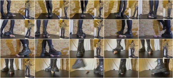 17.5 mins of very hard cock and ball trampling, marching and stomping on a cock and balls until they cum - in platform doc marten boots, wearing my sexy military outfit.THIS is the VALUE PACK, containing all 5 versions of this session in one video, at a massive discount vs. individual videos.CONTENTS - 1) SEXY LEGS version, with legs cam plus full body splitscreen 2) 45 degree angle 3) CRUSH CAM, with a super close ultra HD angle of the board at floor level 4) POV plus full body 5) POV widescreen for full immersionDESCRIPTION:Wake up, maggot! You failed to report for your 0600 inspection. You have got to be the sorriest, most pathetic excuse for a recruit I’ve ever seen in my life!What a waste of space you are. Luckily for you, you have drill Sgt. Dolores to set you straight, and give you the punishment that you deserve. Maybe then you’ll learn to take orders.I’m wearing my genuine military jacket - even in this baggy thing, I still manage to look incredibly sexy - as I’m sure you’ll agree, recruit.My rugged black Doc Marten boots are ready to deal some serious damage to your manhood.You’ll see me march, to the songs that are playing in the barracks today. Oops! Every so often I ‘accidentally’ end up stomping right on your balls! You’ll see me tease and play with the slave, making him wonder when the next strike will come.I move on to stomping deliberately and without mercy, directly on your cock and balls fast and slow.I mix in lots of hard stomps to make sure you’re learning your lesson.I also do my usual balancing on the cock and balls with my full weight, cruelly twisting and contorting them under the rugged lugged soles of these unforgiving boots.You seem to be getting hard from this punishment, so I begin to rub your cock and balls hard under these rough textured soles. After lots of rubbing and more marching on them, I sense it is about to cum - such insubordination!Just before it cums - I stop and begin giving very hard stomps to the cock head while crushing the balls. It is cumming but nothing comes out until I step off the balls and give some super hard stomps to the cock, allowing the cum to flow freely. It’s a spectacular cumshot that flies out with the stomps.After some more marching and crushing of the cock and balls now slippery with its own cum, it’s time to report for your duty, maggot.