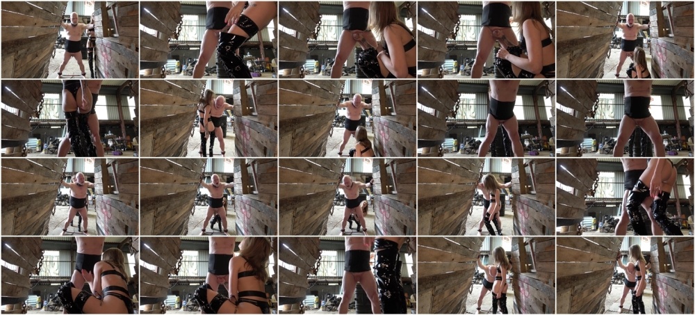 George is being put through a series of punishments by lady boss April Paisley and today its ball busting! all chained up legs sprawled and balls presented for crushing and hitting!