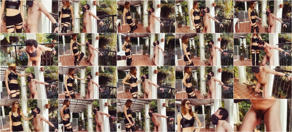 Spring hasn't started yet in Hong Kong, but Vermilion Villa garden is already full of flowers, bathed in sunshine, which is everything Elis Euryale needs for a beautiful and unexpected outdoor session with her slave. He has been well gagged and cuffed to the metal fence, maintaining him in a strict bondage position, arms and legs open, revealing his so-called precious parts... Wearing her shiny thighs high boots, Elis has decided to use them to torment him non stop. Ballbusting him with strength, and without mercy, she will only stop once he has fully surrendered to her, covered in sweat, broken. He was already wearing a fresh cigarette scar on his body, she will add a new one on his cock...