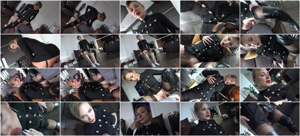 When he is hard enough say to him: "Now I will fuck the hell out of you!" and start riding him, different angles You can first be turned towards him/facing him and later away from him. Example - facing him (include his POV here). Example - facing away from him. You can then move to the couch or bed and continue with different positions (cowgirl, missionary) Please include the attached camera angles. You can get creative here. Fucking from behind can also be included. Angel reaches her climax moaning and trembling. Cumshot scene - Cum on dress / tits For the grand finale please use 2 or more cameras if possible. Sit on the edge of the couch/bed or kneel while your employee is standing. You can still suck his cock but you should start jerking well before he will be near his orgasm. Say to him: "I want you to cover my tits and dress with your hot cum. Shoot your hot sperm all over the buttons." Put your chest up and when he is about to cum, aim straight so he'll shoot his semen on your tits, all over the dress and buttons. Please see the screenshots as the reference. Do some close up shots of the cum on the dress. You are satisfied and the employee can keep his job. At the end you can stand up and walk towards the camera with zooming on your tits.