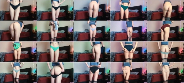 Sage Eldritch has a bundle of new full-back panties to show off in a try-on haul. Watch as she tries on each pair before stripping out of them and moving onto the next pair. She's wearing thigh high fishnet stockings and models each panty while talking to you about what she likes about each one. Watch and listen to Sage try on and change out of all of them to find out which one is your favorite pair.