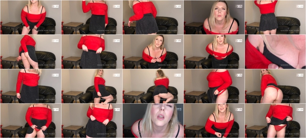 I bought this cute little outfit all with your slave money, and now I'm just going to tease you with it. Shiny black skirt, red fuzzy sweater go perfectly with my black bra and shiny red thong. The way everything accentuates my curves just turns you into a mindless little stroke pet, exactly the way I want you. Every flash of my thong, every bounce of my breast turns your brain off, and turns your cock on to me. Stroke yourself dumb, draining all of that money into my account, buying me new clothes, new shoes, new bags. Everything I want I get from junkies like you.