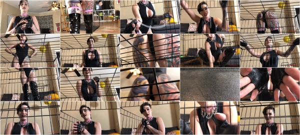 Irene told you she planned to spice up your sex life and has been going through some videos you've been watching on your computer. She has come up with a great idea that you will love. When you walk in the door you notices she has a collar and leash in her hand, and a doggy cage behind her. She immediately puts the collar on you. She has you get down on all fours and leads you into the cage. Once locked in the cage she tells you she wants you to behave and be a good boy, not a bad boy. She starts to give you commands such as sit, give her paw, etc. To reward you for good behavior she allows you to sniff her butt through the cage and she knows you love her boobs, but instead of taking her boobs out of her top, she wipes the sweat from under her boobs with her fingers and let's you sniff and lick her fingers. Irene is really getting into this so she tells her new that she plans to take you to the park later for some exercise and expects that you will behave and run around like a good boy, but for now, she teases you further by mentioning a tail butt plug...