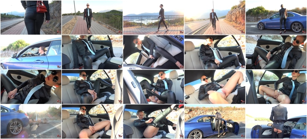 She’s flawless.Power-walking in Freddy leggings, heels clicking, tie perfectly in place - the LadyBoss is on her way to dominate the day. Confident, cold, untouchable.But control is fragile.After her meeting, she returns to the car. A single glance into the lens, and the spell breaks. She slips into the backseat and spreads her legs. No foreplay. No mercy. She tries to stay composed, but lust takes over. The perfect outfit turns into a battlefield of frustration: tight pants cut open, her voice breaking into moans as the LadyBoss falls into pure, primal need.Rough, improvised, raw.Panties get pulled down and the car becomes her private confession booth of and ecstasy. Her powerful body trembles in orgasmic tension — messy, loud, and unrestrained. And then, like nothing happened, she zips up the remains of her leather pants, fixes her ruined elegance… and walks away.Powerful woman, boss fetish, Freddy leggings, satin tie, car masturbation, rough self-play, pants destruction, orgasm,, dominant aesthetic.Outfit: Leather jacket, Freddy leggings, satin shirt + tie, high heels, lingerie, sport thong.