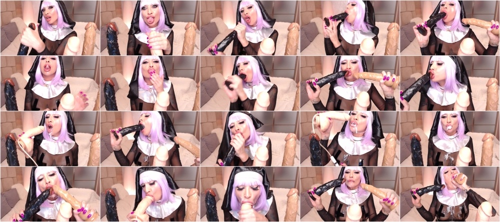 Sucking three dicks and huge load on my face in nun costume