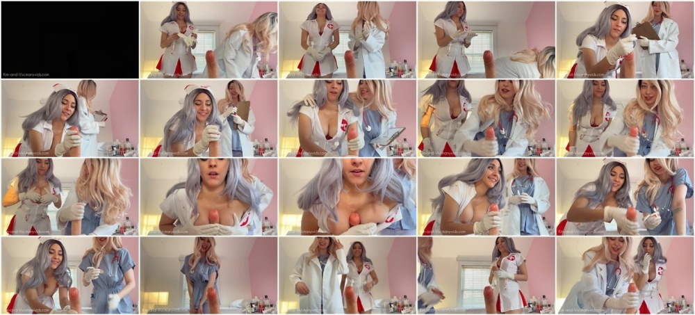 Step into the exam room where a clumsy, yet eager-to-learn Nurse Kim is about to receive a hands-on lesson in semen extraction from Dr. Vivi! Sorry you have to be the guinea pig, but the doctor will guide her gloved hands through all the motions until it's time for the next level - a luscious, bouncy tit job. Together, the doctor and nurse push you closer and closer to the edge, giving you a countdown to the moment you cum into the cup they've provided, and Nurse Kim skips off to deliver it to the lab._________We Make Custom Videos!HEY YOU <3 Yes, You! 90% of our premade videos were commissioned by viewers just like you! Check out our growing library of content and you’ll see a pornographic fetish-friendly labor of love. Reach out to us anytime. We're here to make your fantasy a reality, so send us your custom video outline, video length, and payment method whenever you're ready to get started. Let's turn that hot idea of yours into something you can actually watch!xoxoVivi and Kim