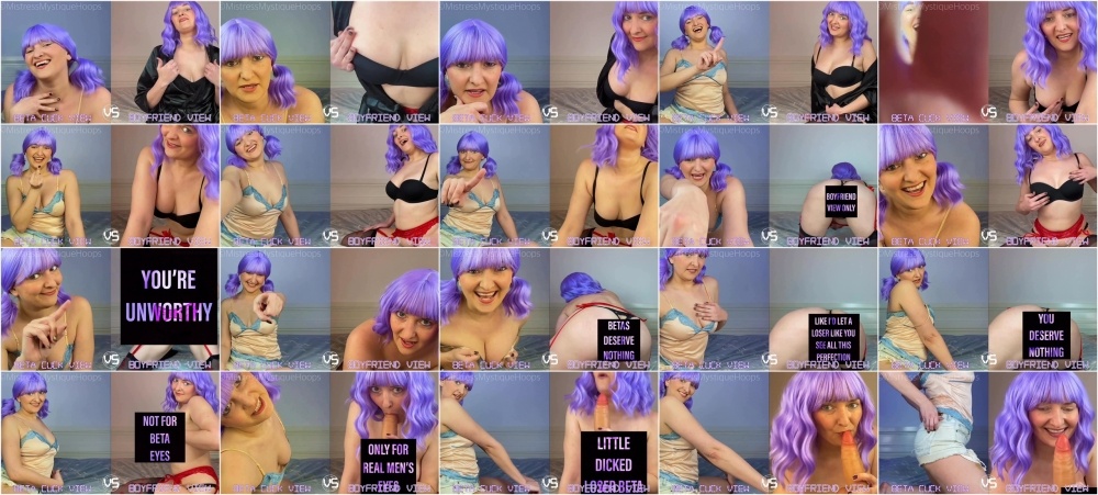 As a beta you'll never deserve the kind of attention Mistress gives her boyriend, but today you can get close. On half the screen you will see the Beta Cuck View where Mistress will mock you for being the pathetic beta cuck you are, and on the other half of the screen you'll see Mistress in lingerie talking to her boyfriend about what a real man he is compared to you. Of course everything is beta censored for the protection of your puny beta cuck brain, so say, "Thank you, Mistress!" *** For more of Mistress Mystique's favorite Beta Censored content see Small Dicked Betas Only See Censored Porn, Bisexual Beta Censor Test, and Beta Bitch Censored Porn. This is a great clip for those into Cuckolding,,, Verbal Humiliation, Tease & Denial, and Brat Girls.