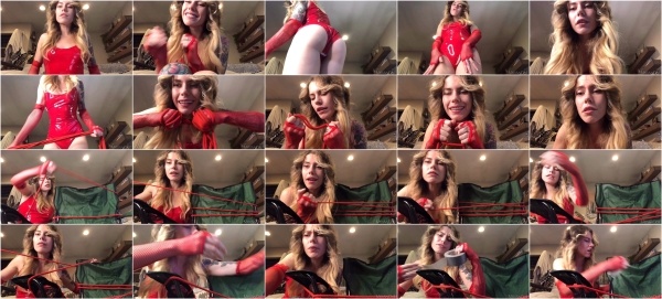I heard you've been a bad submissive, so I have no choice put to dress up in My latex red bodysuit and red gloves to properly punish you. After teasing your mercilessly I decide to have some fun and tie you down to a chair. I tease you more and make you play for Me. I make sure the rope is nice and tight around your whole body so there's no escaping. Now that mouth, I have some duct tape for that. Bound and gagged just the way I like you.