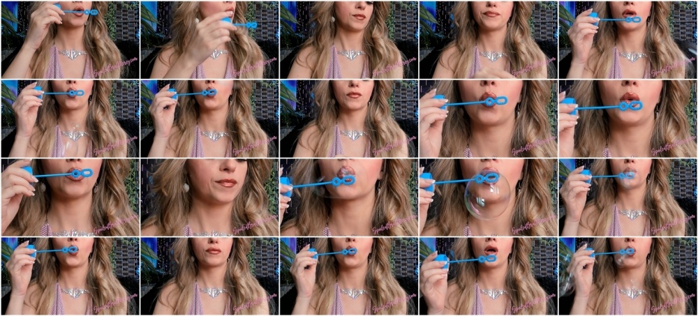 Blowing lots of different size bubbles at the camera. Extreme close-ups sexy lips blowing bubbles at the camera.