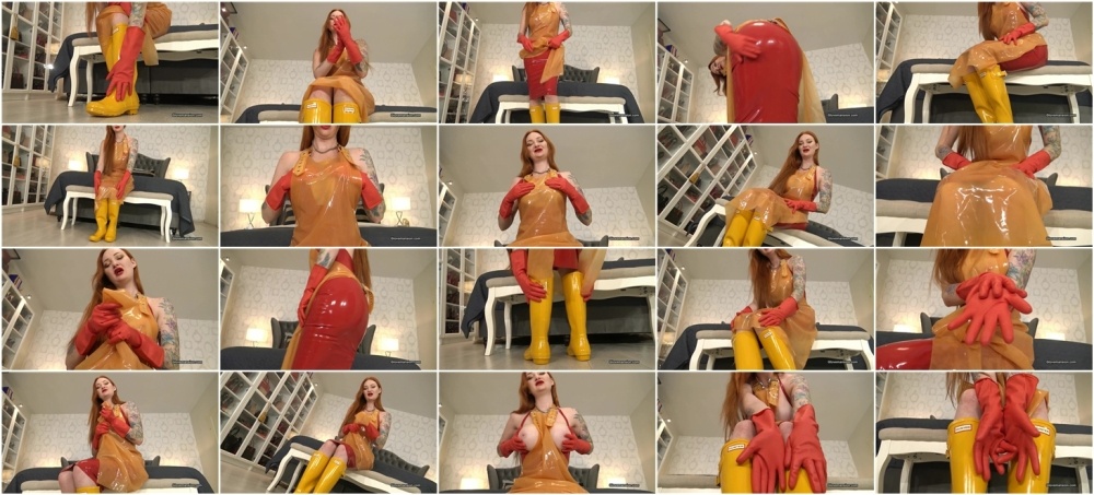 Zara is looking so sexy in her latex apron, rubber Hunter boots AND rubber gloves! This sight will surely get your heart racing and your cock rock hard. She loves to tease you as she instructs you to jerk off and CUM on her gloves and boots.