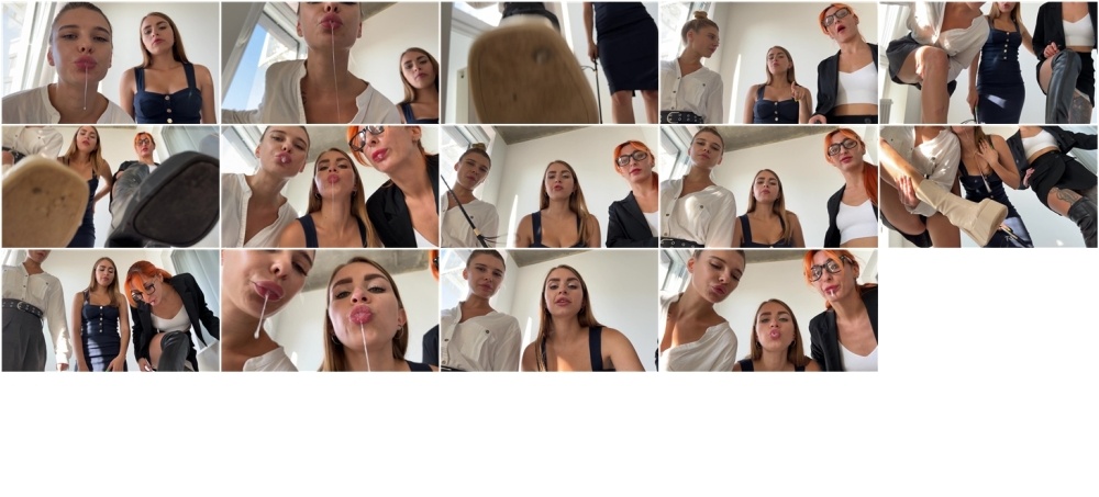 The strict dress code on the three young female teachers - Dorimills, Jucy and Agma - may lead one to believe that they are ordinary teachers, but they are not. These three female teachers are quite cruel and love to use their power to punish their students, and often these cruel punishments can even be for no reason, simply because these three Girls like to humiliate pathetic students. And now it's your turn, you knelt on the floor in front of three sadistic female teachers who are already ready to spit in your mouth and on your face. Spitting is the favorite way of three powerful bitches to bully students and leave no traces so that the humiliated student cannot provide the facts that female teachers were bullied on him. Therefore, enjoying their impunity, three dominant female teachers continuously spit in your mouth, filling it with their saliva and spit in your face, completely covering it with their saliva. What's more, Jucy, Agma and Dorimills spit on their boots and order you to lick their saliva off their boots. Be pov humiliated, pov spat upon by three sexy female teachers.>> [This Clip in MP4 HD 720p] <<
