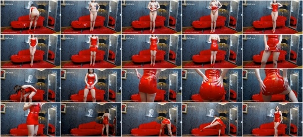 Lilla Grace - Red Latex Mini - Skirt, Red Latex Top and Crotchless Pantyhose