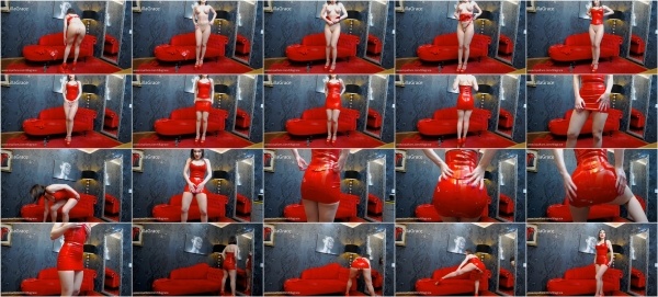 Lilla Grace - Red Latex Mini - Skirt Red Latex Top and Crotchless Pantyhose