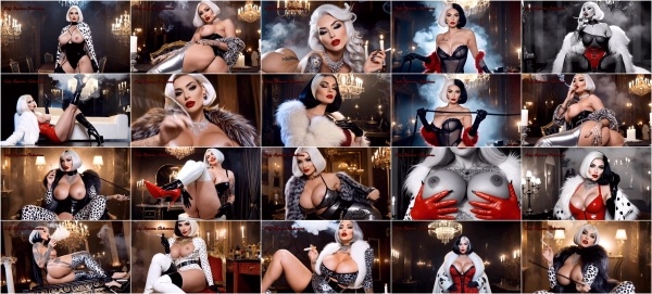 Darling pup, crawl into Cruella's smoke-wreathed lair—collared, leashed, and begging for fur-tipped torment. I'll train you with humiliating humps, latex teases, and cigarette drags that choke your resolve. that pathetic prick to my vicious, sniff my glossy boots, but deny your spill. Woof for mercy? You'll get ashes instead. Eternal tease in my salon of sins. Ready to roll over?