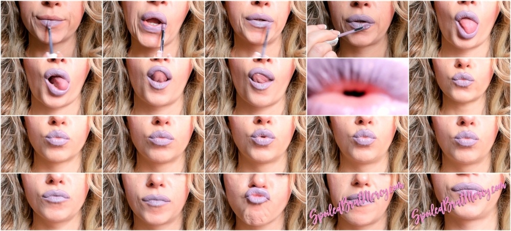 Puckering my lips up close applying light pink lipstick. Extreme close-ups of lips applying makeup wearing pink lipstick licking lips and sniffs at the end. No music