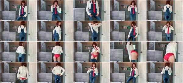 Sage Eldritch is costumed as Uraraka Ochako [My Hero Academia]. She is modeling her school uniform with denim overalls as she struggles not to wet herself. After desperately trying to hold it, she goes ahead and pees in her blue jean overalls from the front and back. Watch the wetness spread all over her overalls as Uraraka wets herself. After she's done peeing, Uraraka models the soaked jean overalls front and back before pulling them down. She then shows off her soaked panties before pulling her wet overalls back up over her butt.