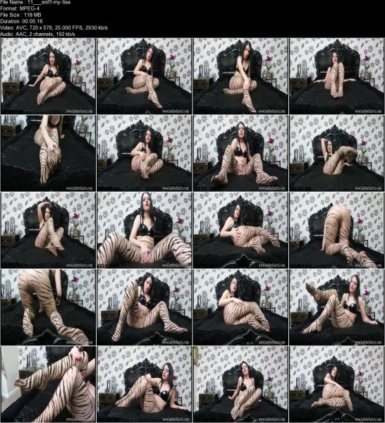 Perched on My bed, I catch you, My little nylon slave perving over Me in My tiger print pantyhose. In this POV I summons you to worship these exquisite Wolford pantyhose but wonder if just any pantyhose will do or are you a slave of distinction. I know how much you want to sniff it, I know how much you need to lick them but I’m going to make you beg. I know how to get through to you and manipulate you with My highly arched feet. You must have a scent fetish as I know how much you’d love to smell the gusset of these pantyhose as I expose just a hint of pubic hair to tease you even more.