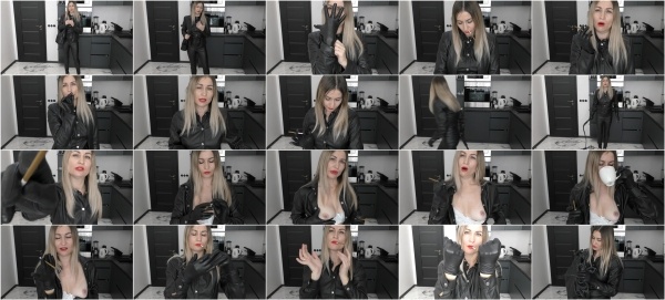 CLIP REQUEST:Hello dearYou wear the leather black pants, wearing leather black shirt, white breastfeeding bra, old black leather jacket, black old tight leather gloves, black high heels, straight hair style, red lips, and prepare the below script:You arrive in the school room in order to continue the 6th lesson for me about step-mommy smoking cigar.You enter in the classroom wearing the above leather outfit and keep in you hand your black old leather gloves and clap in your hand the gloves very very soft and calm in your left and right hand.Your so addicted with your cigar that you want immediately to light your cigar and smoke your brown cigar and then you come near in the camera, show me your hand nails and start to wear on in your hand the leather gloves and as you wear you close and open your finger to be more tight, take the brown cigar and lighter and start light the cigar and you start smoking near in the camera and blow the smoke from your mouth near in the camera and talk to me very soft and gently that you will punish me and you breastfeeding me, tapping your ash in my mouth and you talk to me so calm and soft, your so addicted with smoking and enjoy a lot and blow your smoke in my face. As you smoke with passion your cigar you start your lesson and show me the way that you can smoke, how blow the smoke from your nose and mouth, how keep he cigar in your glove hand, how keep the cigar and tapping in my mouth, how many times per day you smoke, you show me some smoking way that you prefer to keep the cigar with your leather glove finger hand and use for smoke. Then you take the bullwhip in order to keep all the time in your hand and cracking in the ground.Because i make too much noise in the class you start clap gently and soft your both leather hands together to hurry up me and to make me to concentrate, and then as you teach me, and smoking too, you start teach me with cracking the bullwhipmany times in the ground, and continue to show different way that you can light the cigar in your mouth.Again you come near in the camera and light your cigar and blow the smoke in my face, suddenly as you teach me and cracking the bullwhip i run out of the class and i try to escape from you and then your look so surprise in your face with me and you start run around of the class and around of me and you start cracking the bullwhip in the ground to catch me and walk in the class and cracking the bullwhip in the ground and smoking too.After a while you run to catch me and cracking the bullwhip and punishment because i am so exhausted in order to relax me you come near, light your cigar and start talk to me very very soft and gently like a real nursing step-mother that you want to breastfeeding me and give me you breast milk, then you open very well your leather shirt, open your breastfeeding bra well and start feeding me and you squeeze your breast nipples and feeding me and continue to smoking exhale the smoke and use me as your ashtray slave as you feeding me and tapping in my mouth your cigar ash. and drinking your coffee and smoking and exhale the smoke in the air and using me as your slave and talk to me very gently like a real step-mother when you breastfeeding me. Then hang the whip over your shoulder so it hangs down and as you smoking your cigar you put off your leather gloves from your hand and start put cream in your finger and hand and smoking near view whole face gloves and feet and talk gently and then you wear again the leather gloves in your hand and continue to smoke blow and taping your cigar in my mouth and at the end you wear your leather jacket, put your bullwhip in your bag.
