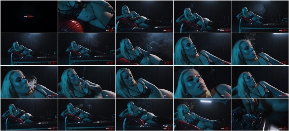 Mistress Anette lay on her side on the sofa in the dimly lit room, her smooth, soft skin bathed in the blue light that cast shadows across her body. She placed a cigarette between her lips, taking a long drag and savoring the smoke as it curled around her face. After enjoying the sensation, she crushed the remains of the cigarette in her ashtray.Features: smoking, fetish, face fetish, high heels, ASMR, pvc, femdom