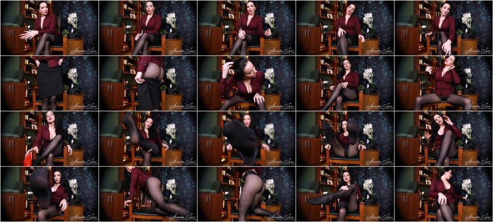As your professor, I think it's time we had a chat. I've noticed that your grades are slipping and that you've seemed a bit down lately. I really do care about all my students and want to make sure you're doing well both academically and personally. I've noticed that you've also been staring at my pantyhose quite a bit. Yes, I know that's a fetish of yours, you couldn't make it more obvious if you tried. I've been thinking that maybe if you had some of these needs met, you might find more motivation to work harder on your assignments. So why don't you take your pants off and we'll have a little "extracurricular lesson".Don't worry, it's completely normal to be attracted to pantyhose, I can tell how excited my legs are making you. Do you love it when I dangle my shiny heels off my feet? Just look how silky and shiny my feet look clad in all that nylon. Do you want a sniff? Go ahead, I know how that smell drives you crazy. What if I just squeezed that cock right between these pantyhosed feet? Wouldn't that just feel so amazing? I'm going to tease that cock and even allow you to jerk off for my feet that I know you love so much. Don't you love this? Do you want to make this a regular thing? Well, I only do this for my top students, so if you're going to want to enjoy my feet like this throughout the rest of the year, you're going to have to improve your work ethic.Maybe working for my pantyhosed feet will motivate you to improve your grades.