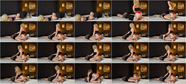 Taylor has spent all day shopping working out, leaving her scent to her lucky seat. She sits on his face and teases his dick over his shorts at first. You can hear him begging to be let out at stroked. She takes him out and starts stroking him while she is grinding on his face. At the end, she gets him to blow his load.