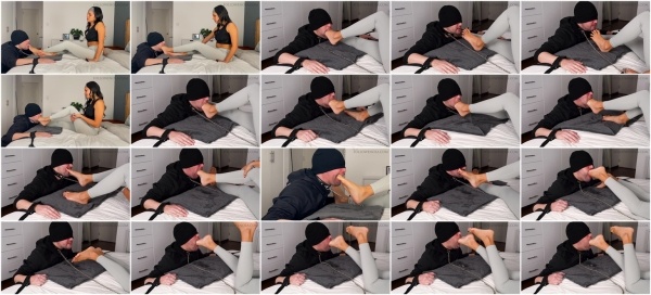 EXTREME FOOT GAGGING He was tied to the bed — wrists bound — completely helpless— completely exposed, completely mine. I leaned back beside him, twisted my leg, and without warning, shoved my bare foot straight into his mouth, pressing deep until my toes hit the back of his throat. His eyes snapped open, his body jerked, but with his hands trapped and my sole in full control, he could only gag, drool, and suffer in silence. I held him there — toes flexing inside his mouth, arch pressing down on his tongue, sole sealing his breath — watching his nostrils flare as he fought to survive under my skin. Each struggle made me push harder, stretching his jaw, flooding his lips with slobber, turning his face into a wet, humiliated altar for my foot. This isn’t play. This is cruel foot gagging without any mercy! — your mouth exists to choke on me, nothing more.Find 1080p Clip here