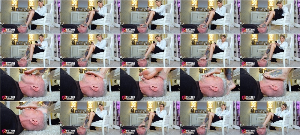 FEMDOMSQUAD Video Store - Mistress Sarah - His face is my footrest and foot cleaning machine
