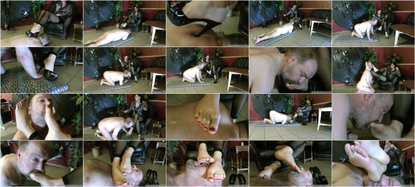 It’s a lazy Sunday afternoon and Madame Sarka is at Her dungeon, fiddling around with Her mobile phone, while using Her slave as a footstool. Well, he's more a massage-stool, to be honest, because Madame Sarka is pumping Her gorgeous high heels up and down his back. You can clearly see a forest of imprints on his back, like a bombarded landscape. It looks quite lovely, so such a shame it’s not a keeper! Then the imprint slave is ordered on his knees and Madame Sarka starts crushing the weak flesh of his hands. Ouch! That is painful! But as Madame Sarka’s explains: “I want you to suffer for Me.†And Madame’s always right, right? But, as we all know; every cloud has a silver lining, and so at last the slave gets his reward for all his suffering and is ordered to worship Madame Sarka’s feet. And sweet mercy, those feet are sexy! Watching them up close makes you want to lean over to the screen and join in. What does suffering really mean, as long as this is the reward in the end? Near the end of the clip Madame Sarka’s feet are right in front of the camera and that’s the moment to use the pause-button and take in all that beauty. This is a amazing, dazzling and very sexy clip about feet-worship and the (small) price you’ll have to pay to get there. It’s Madame Sarka’s power of the feet and you’ll absolutely love it! Down, down, on your knees!