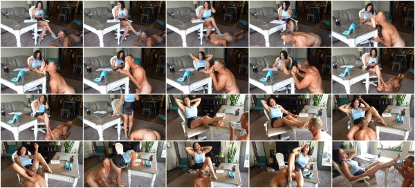 FULL version of a typical day in the life of "little office stooge" and his daily at the powerful feet of his female boss. This is how to earn your paycheck, doormat!