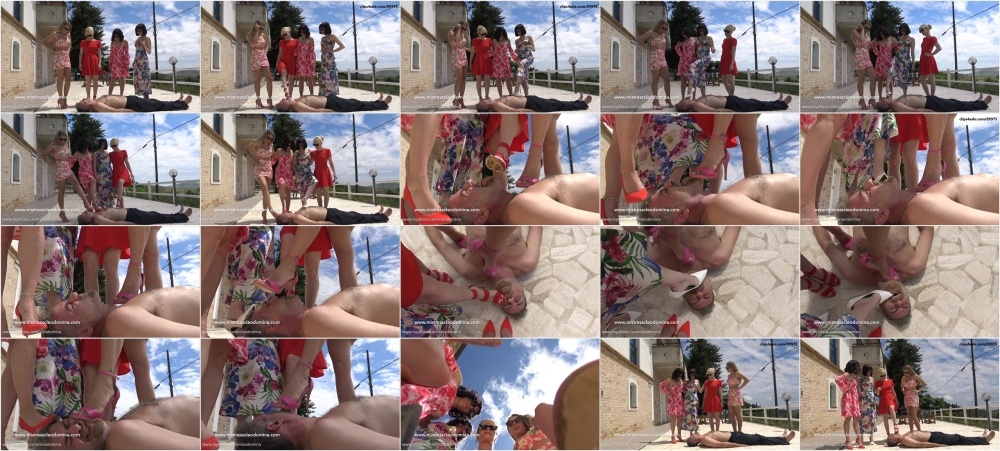 Io e le mie amiche siamo nel cortile della Villa Femdom. Indossiamo abiti eleganti e siamo pronte per una bella serata. Ci accorgiamo che le nostre scarpe sono sporche di polvere e fango, per fortuna abbiamo lasciato il nostro leccasuole in cortile pronto all’uso! Ora dovrà prendersi cura delle nostre scarpe e pulirle alla perfezione.