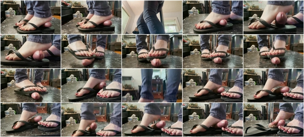 Pleasetreadonme - POVS I crush his HARD cock between my FLIP FLOPS until he EXPLODES on my toes