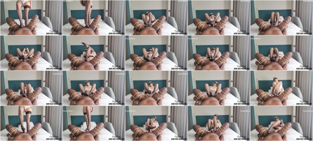 Tony was eager to feel my feet on his cock. I tied up his legs, and tied his hands to the side. I'm the one in control, he can enjoy the view and sensations! Standing up or sitting in front of him, my feet play with his cock to the rythm of our moans and giggles. I enjoy what i do, and i do it right!
