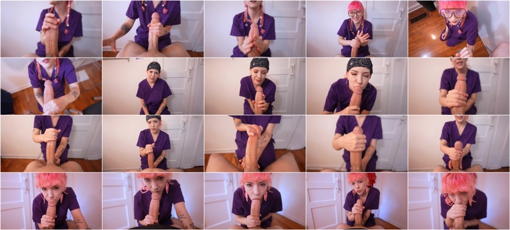 INCLUDES 3 NEW NOT SOLD SEPERATELY NAUGHTY NURSE VIDS! one handed hj with cumshot all over hands, hj with standing facial, bj with cum swallowing. each vid is in scrubs and follows the same nurse and patient at a cum clinic. different look in each vid. almost an hour of content!