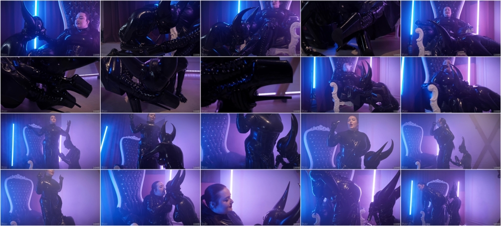 Today Mistress Karino will use this Devil Rubber Doll to worship her black overknee boots! He will lick and kiss them while she enjoys smoking! After boot worship it's time to shine Goddess latex body with oil, all in the surroundings of of smoke and neons!