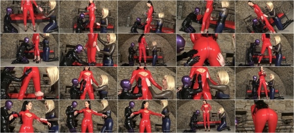 Before I start the day in my dungeon, my rubber doll and latexclad sissy maid have the duty of making my rubber catsuit all shiny.