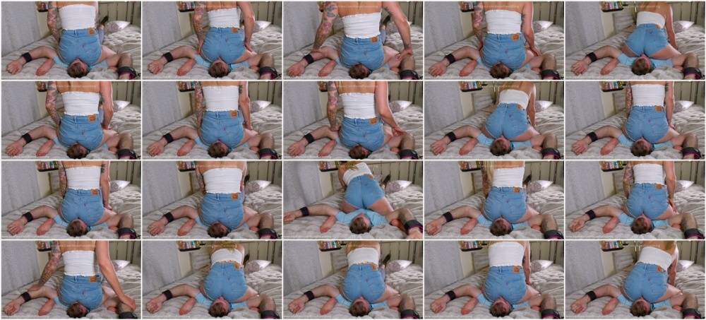 Brutal Face Sitting And Femdom - Full Weight Reverse Face Sitting In Sexy Jean Shorts