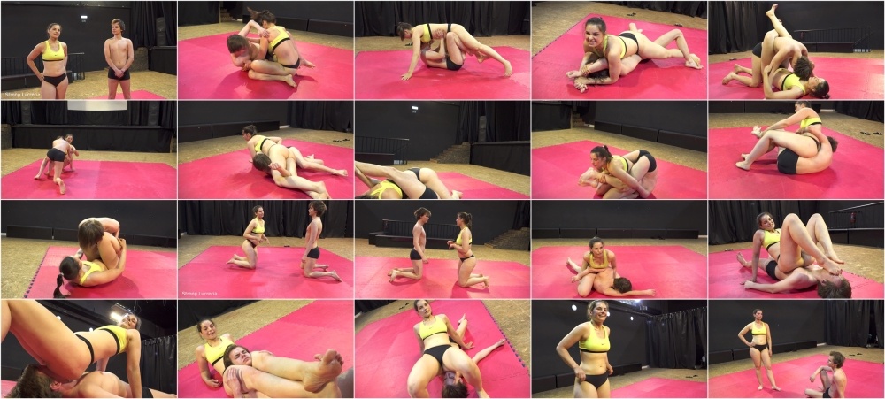 The beautiful Amazon of Prague, Gloria 5 ′7 ″ (171 cm), 154 lb (70 kg) returns on the mats in a high style, facing courageous Christian 5'7" (180 cm), 133 lb (60 kg) who doesn't like to tap!This purely competitive match is a great example of Gloria's wrestling skills that has improved rapidly since she started grappling. She uses herytic thinking, long and strong legs, power and curves to endure skinny Chris. There are some lovely pins, grapevine holds, headscissors, bodyscissors and even a smother submission in this amazing fight which will make happy all fans of more one-sided wrestling as well as some passionate facesitting and foot domination! Match outline: interview, the match (21 minutes), winner punishes the loser (11 minutes), victory pose, interview.