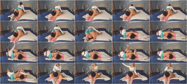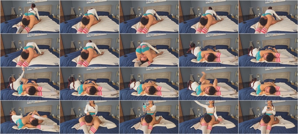 Goddess isnt happy and needs to let out some anger luckily she has a slave that she can "vent" to lol Goddess squeezes the life out of her slave as he struggles to even get a breath of air between her thighs.