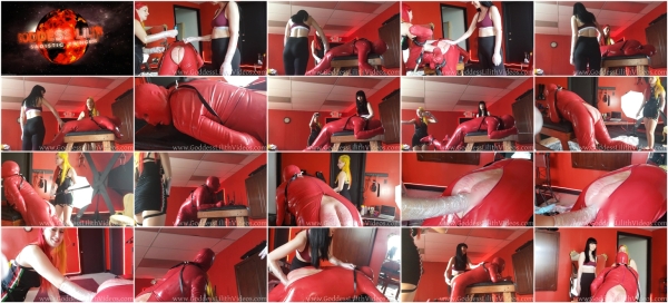This is a REAL session with a sub at My old dungeon! After sufficiently beating this gimp slut's ass, it's time for Us to have Our way with him! We use our hands to open up his slutty ass while stuffing his mouth with a strap-on - how much of Our fists can he handle??