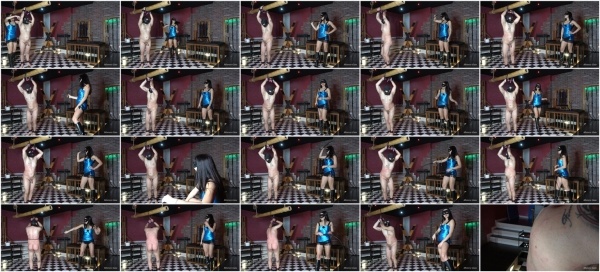 Hanging with his hands tied to the wooden beam, my slave will receive a very harsh whipping treatment with my BullWhip today. It is the first time for him that he is used as a guinea pig for such a whip, and being sure that he will scream like an idiot, I immediately put things right by covering his useless mouth with scotch tape. He is already shaking, moaning, he wants to tell me something but I don't understand. I won't have any mercy anyway. The first blows start and they resound like thunder in my studio, with him moaning and wriggling trying to dodge my blows. There is nothing to be done. A few minutes pass and his body is already in pieces, bruises and marks that dig into his skin. A sight for my eyes, and so many tears for him. I continue and continue without stopping, I bring him to the limit of human endurance. He can't take it anymore, he is about to give in, in fact from under the scotch tape I can hear the word mercy, and it is only then that I stop. I have to say that it surprised me, for being the first time with the BullWhip it also resisted quite a lot! Good slave, but remember: it's just the beginning, you will have to improve more and more!