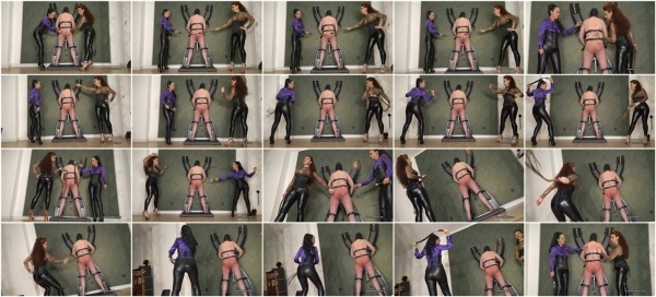 Mistress Lady Renee and I have teamed up for an afternoon of hard slave training. This particular specimen is in dire need of correction and punishment. We will take him to his limits but we start by warming up his flesh with our riding crops and floggers. His skin is ours.